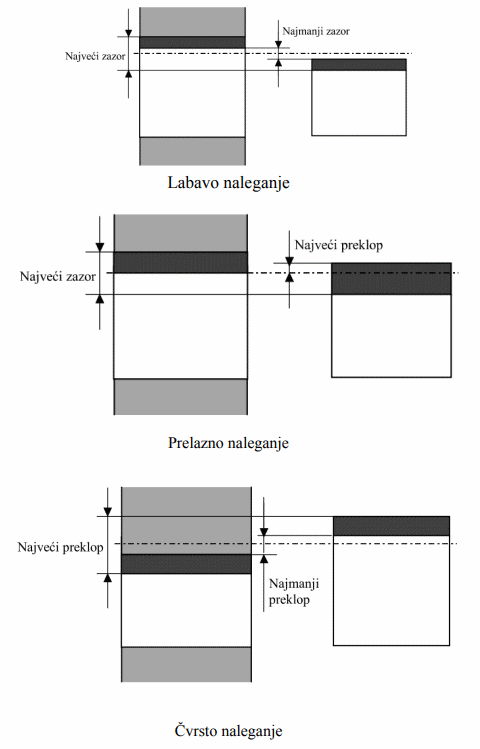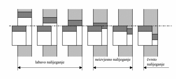 labavo – postoji zazor jer osovina ne ispunjava rupu u potpunosti