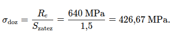 Stepen sigurnosti na zatezanje zavrtnja Szat = 1,5