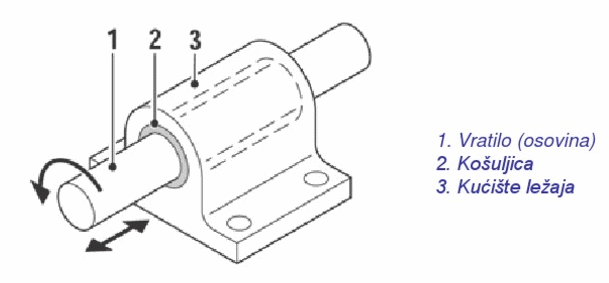 Kontakt između osovine i ležaja je po površini cilindra.