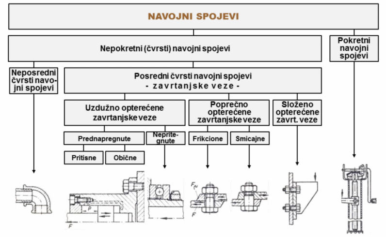 Ako je navoj izrađen neposredno na delovima koji se spajaju (cevi, ventili itd.), onda je to neposredni čvrst navojni spoj, a ako je izrađen na posebnim delovima koji se nazivaju zavrtanj (vijak) i navrtka (matica), onda je to posredni čvrst navojni spoj.