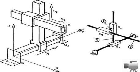 Posmatrajmo TTT-shemu prikazanu na slici 2.14 i razmotrimo šta je to što ograničava mogućnost da vrh C stigne u bilo koju tačku prostora. Ograničenje potiče otuda što je pomeranje bilo kog segmenta kroz odgovarajući zglob ograničeno. Na primer, kod klizanja zgloba S1 po šipki G1G2 uvedeni su mehanički graničnici (G1 i G2). I kod ostalih zglobova dužina izvlačenja ili uvlačenja segmenata ograničena je samom dužinom segmenata, pa se u konstrukciji uvode graničnici.