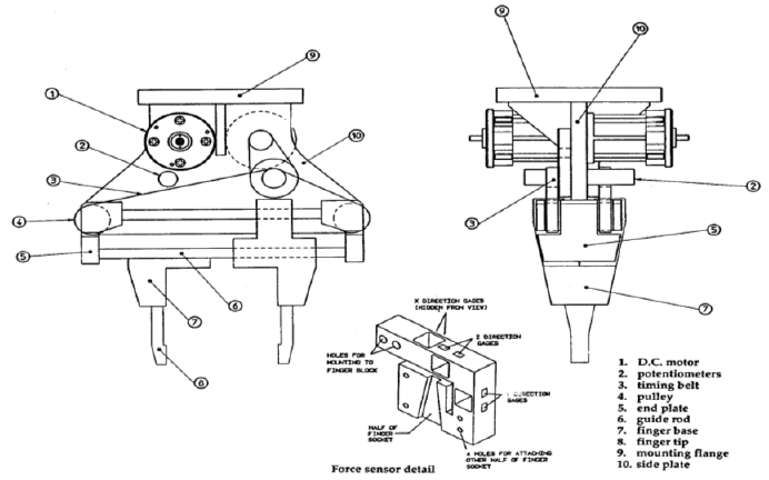 Ilustracija na početku prikazuje servo-gripper s integrisanim taktilnim senzorima na prstima i signalnim vodovima ka kontroleru.