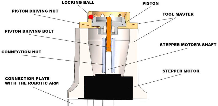 Na slici iznad se vidi mehanizam automatskog alata za izmene (tool changer):