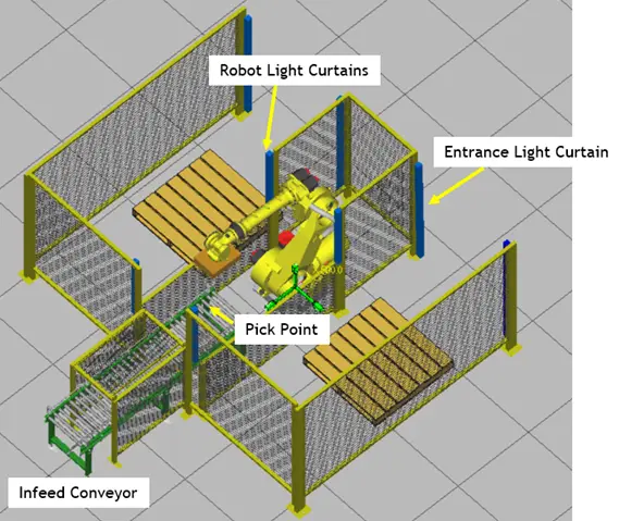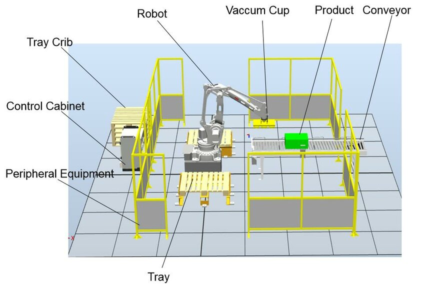 Slika prikazuje tipičnu paletizacijsku ćeliju: