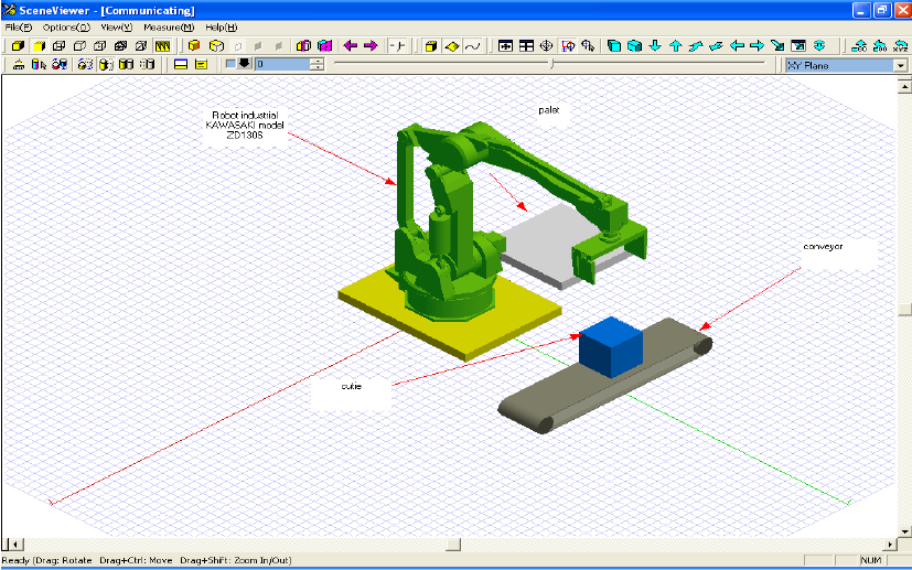 Predmeti dolaze transportnom trakom; senzor signalizira robota da pristupi |