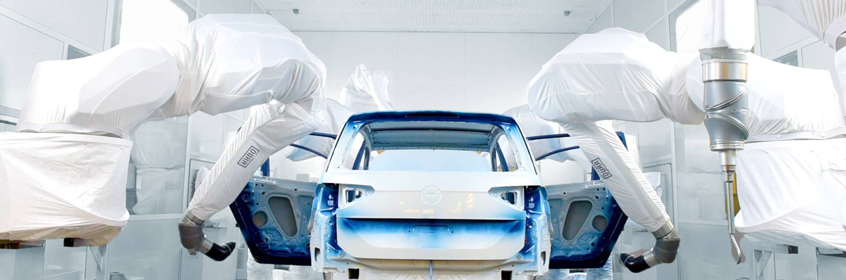 Robot nanošenjem spreja ili gela boji površine velikih delova precizno i efikasno.