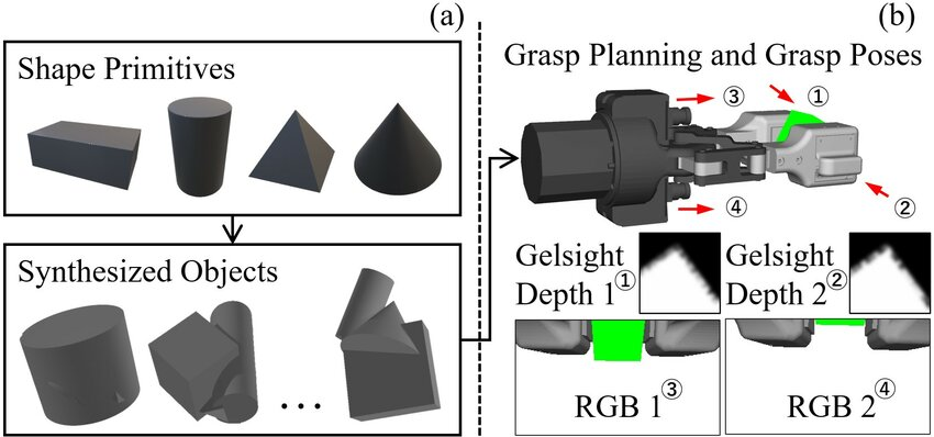 Vision sensors (RGB-D, 2D/3D kamere) omogućavaju robota da prepozna položaj predmeta i planira hvatanje u realnom vremenu. Dubinski senzori posebno su korisni za grabe planiranje tekstureless objekata u skladištu.