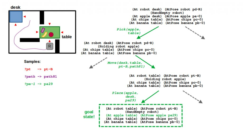 U modernim sistemima kombinuje simboličko planiranje i proveru izvodljivosti putanje (poznato kao TAMP — Task & Motion Planning).