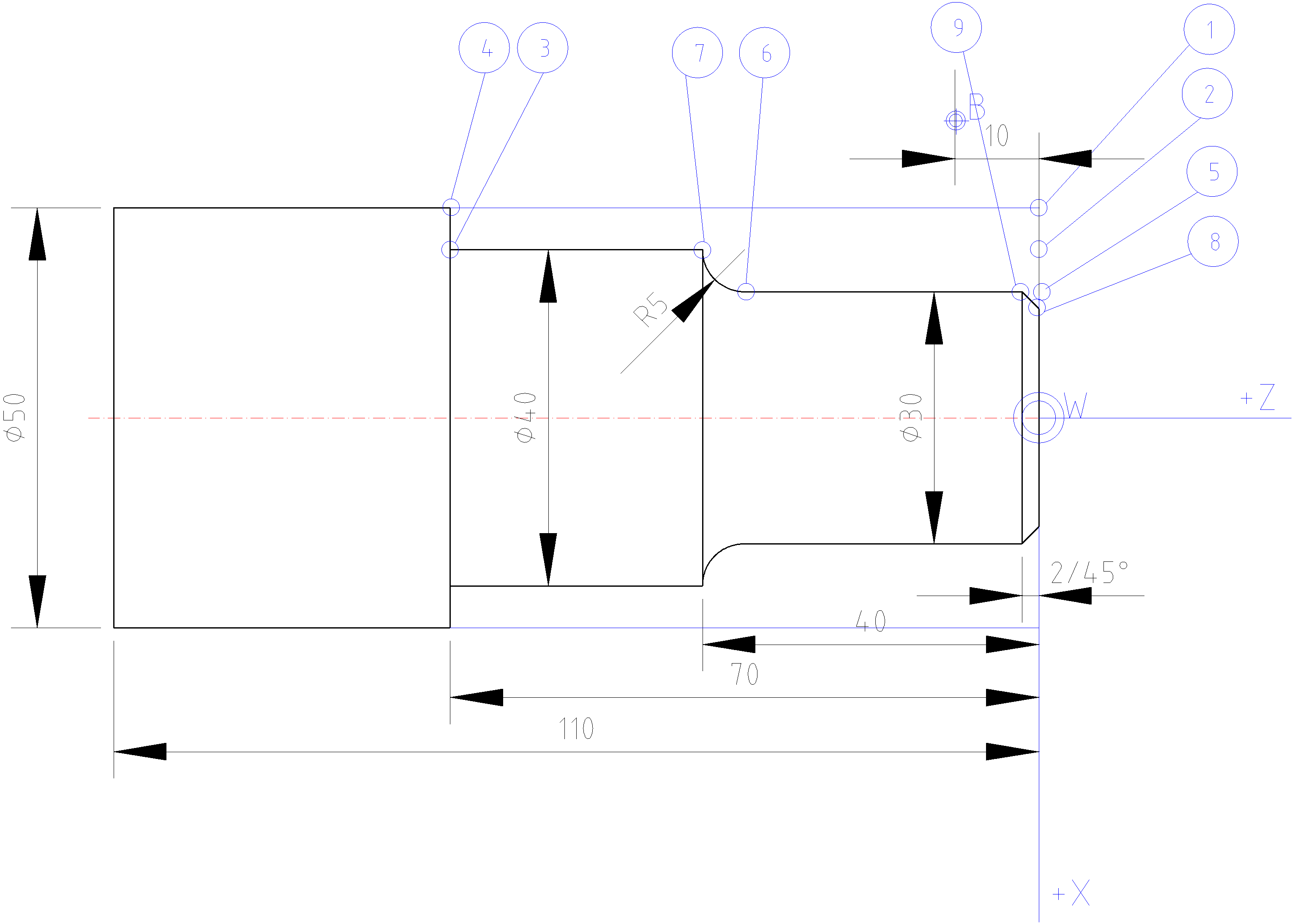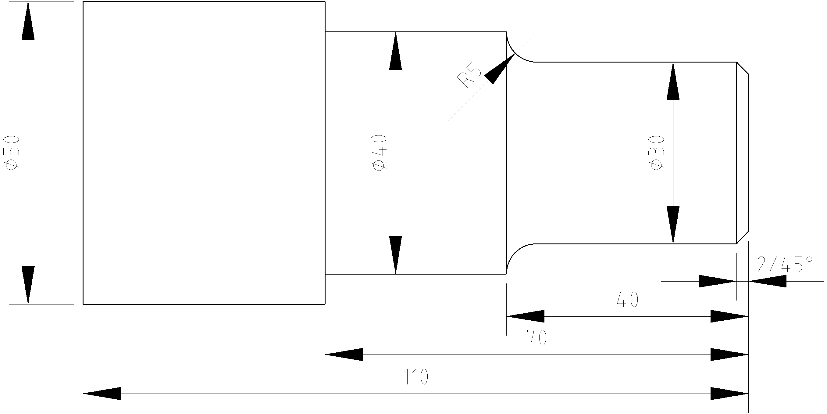 Nacrtaju tok tehnološkog procesa: Grafički prikazati sled operacija, pozicije alata, dimenzije obratka i redosled operacija (npr. tehnički crtež obratka sa označenim segmentima i alatnim putanjama).