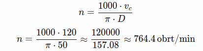 Materijal koji se obrađuje je čelik C45, a prečnik obratka je D=50mm. Preporučena brzina rezanja je vc=120m/min. Izračunaj brzinu obrtanja obratka n.
