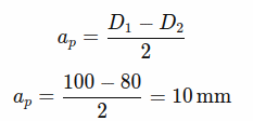 Obrađuje se cilindričan obradak dužine L=150mm sa početnim prečnikom D1=100mm na završni prečnik D2=80mm. Izračunaj: